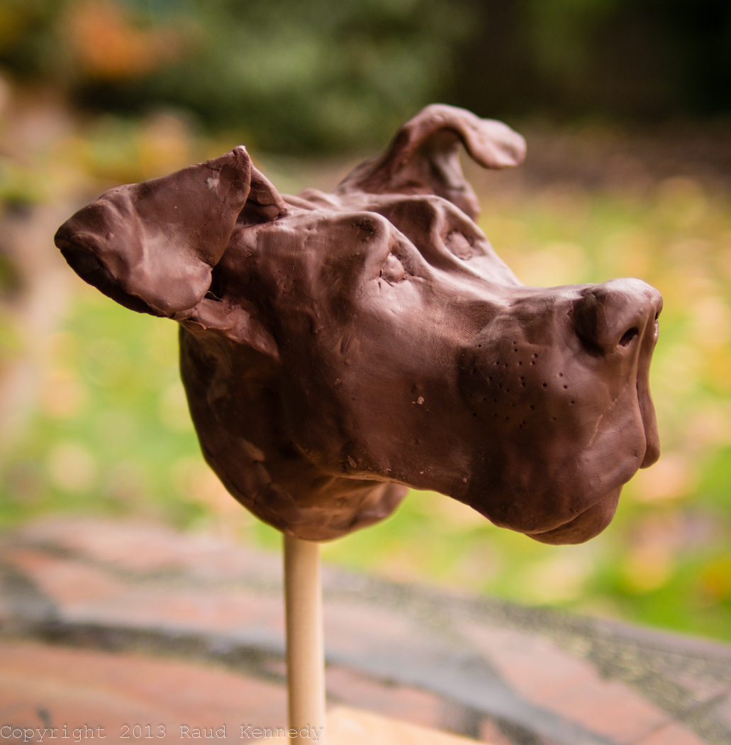 I sorted out a way to mount the dog on a dowel. Once the patching around the dowel is dry, I’ll seal the self-hardening clay with a clear coat, then paint it with acrylics. I know very little about painting technique so that will be a learning experience.