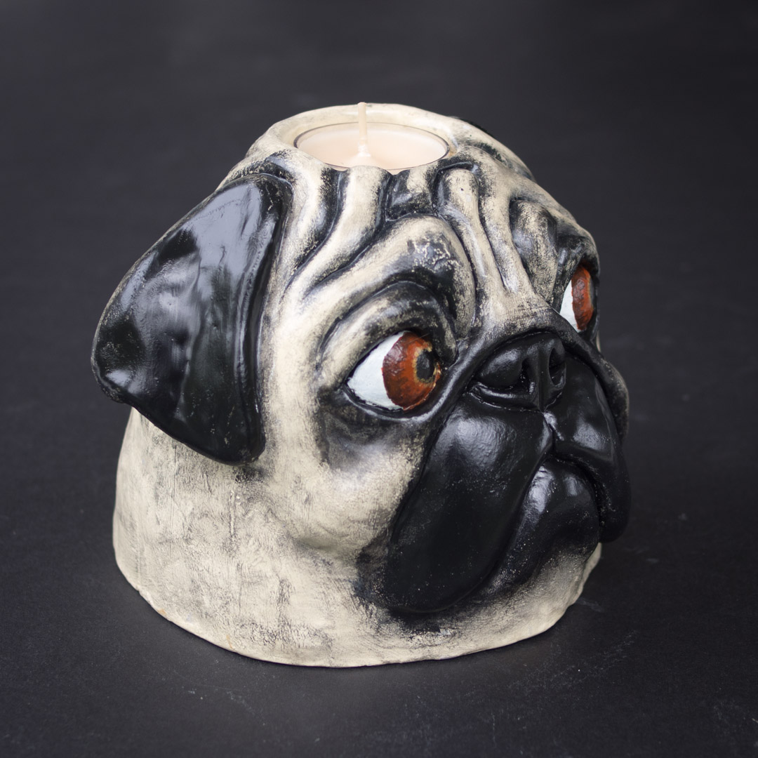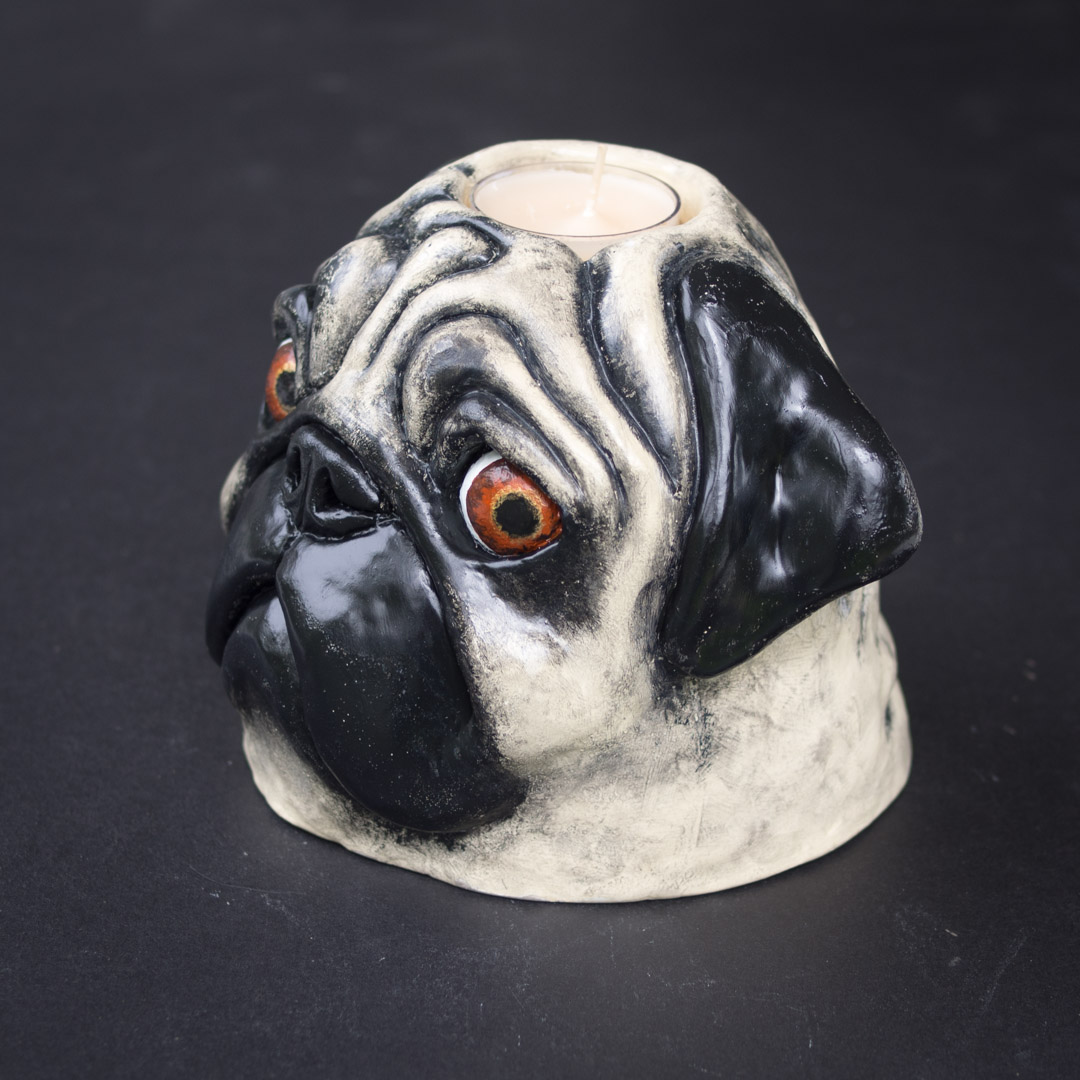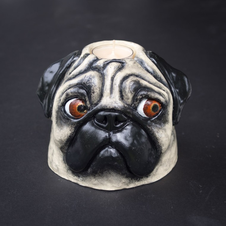 So I need to come up with a sales price for the pug tea light holders I’m making. This is the first one I’ve finished that’s ready to go. It is 6 inches wide by 5 inches deep by 4 inches tall. So if you were shopping for this type of item what would you expect to pay for it? I’m terrible at putting dollar values on things and would appreciate any suggestions.