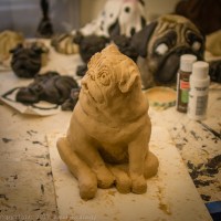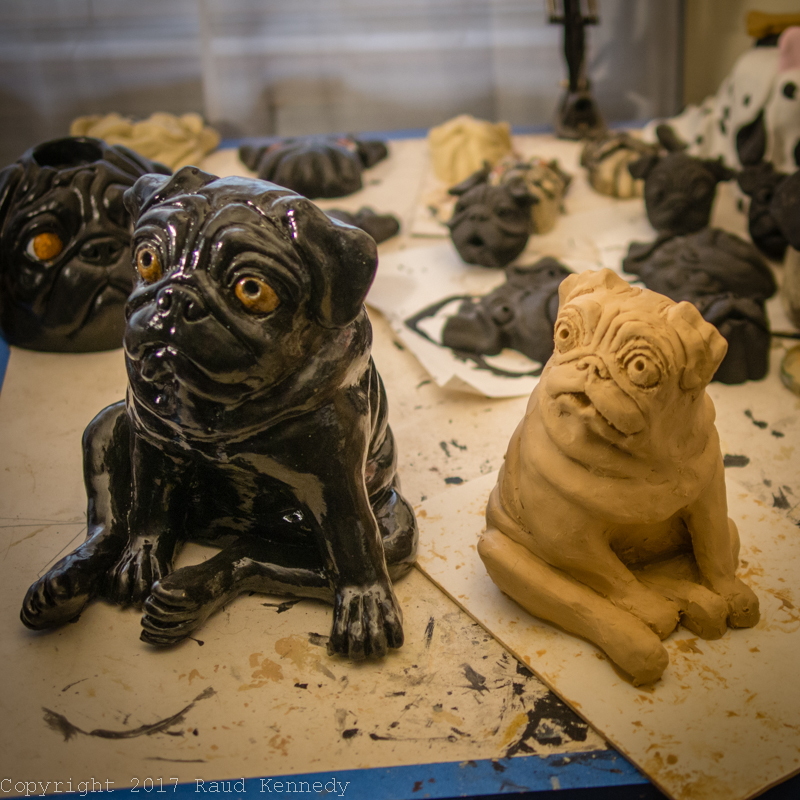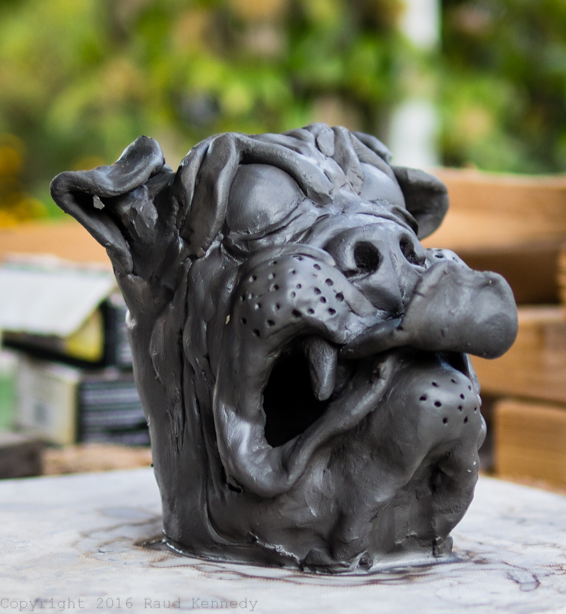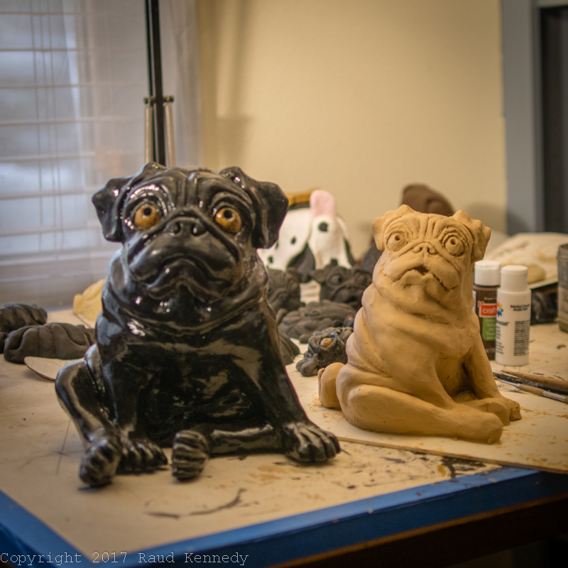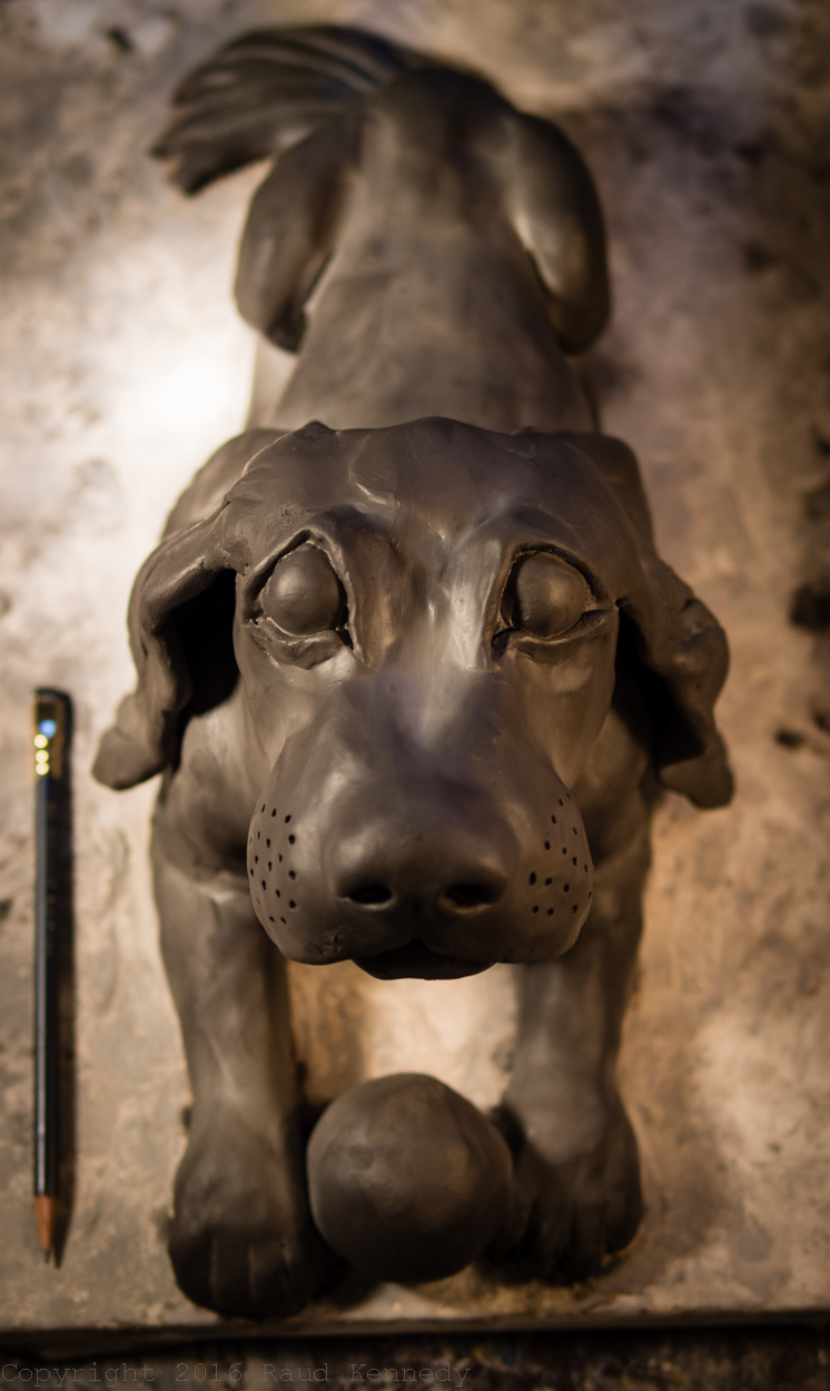 Creating dogs out of clay from photos stresses me out. I’ve procrastinated making this one for at least a month. When I began to think of it as a cartoon in clay, I finally relaxed and was able to make it. It needs to dry a couple days before I turn it upside down and hollow it out. I’ve never done the complete dog, body and all, before. I’ve only done just the head, some for hanging on the wall, others for sitting on a table, some with stands, others for sitting on their own. I did a series of them as candle holders also. Making the entire dog presents its own problems of proportion without letting the size of the dog get out of hand. Next comes painting it. Here are the photos I worked from.