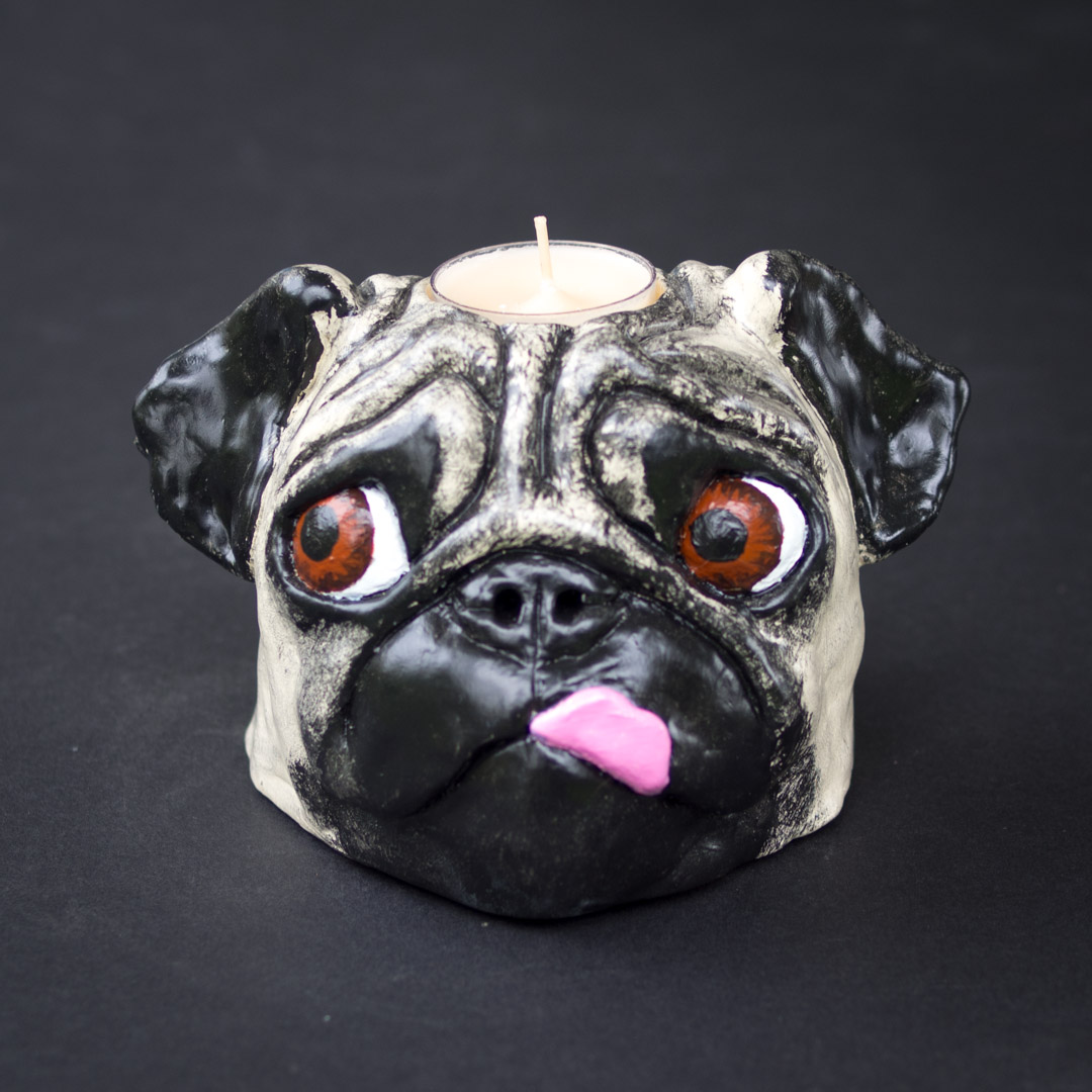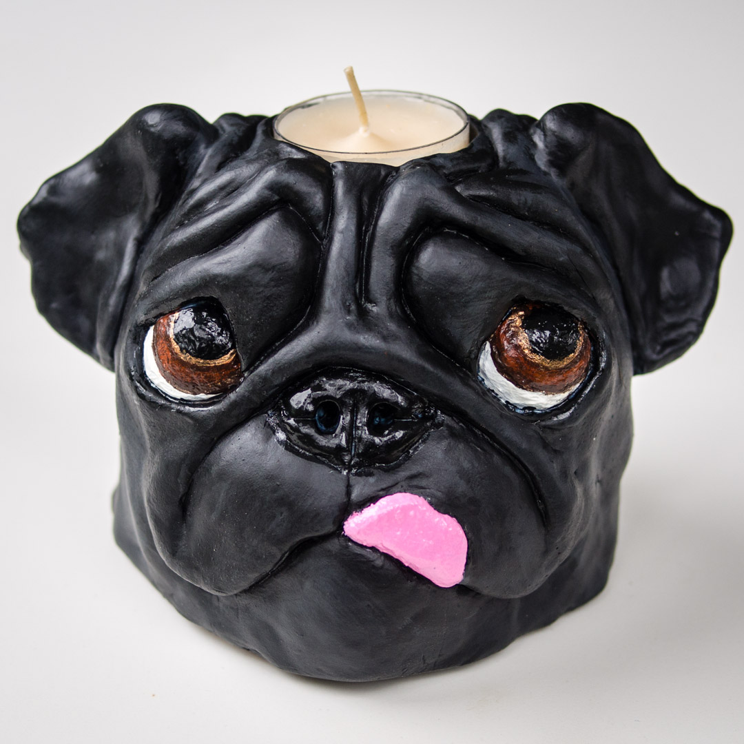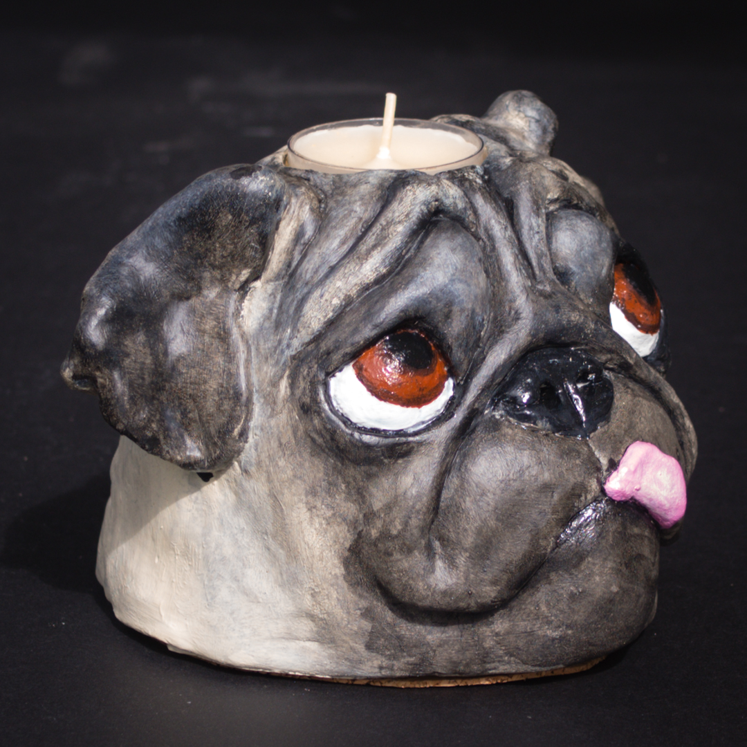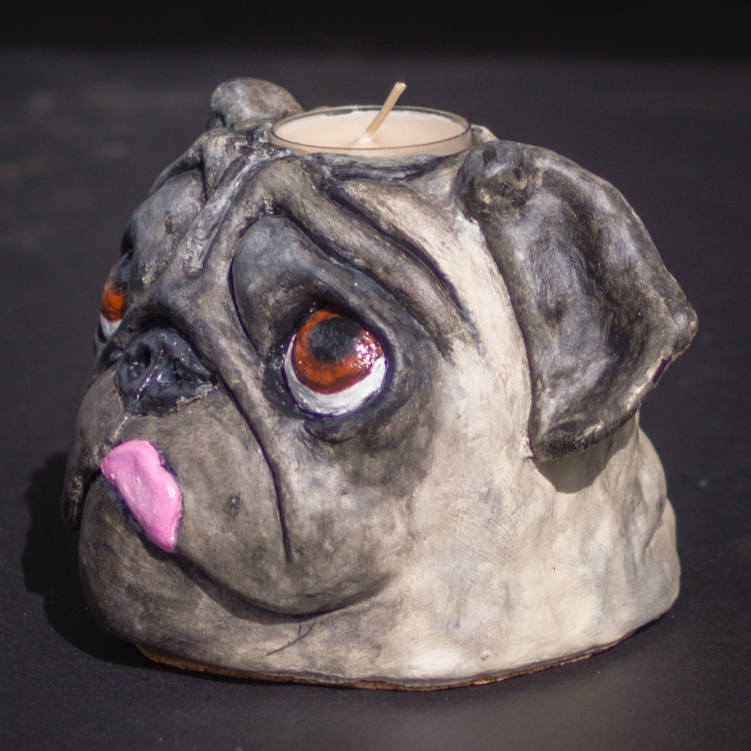 So I need to come up with a sales price for the pug tea light holders I’m making. This is the first one I’ve finished that’s ready to go. It is 6 inches wide by 5 inches deep by 4 inches tall. So if you were shopping for this type of item what would you expect to pay for it? I’m terrible at putting dollar values on things and would appreciate any suggestions.