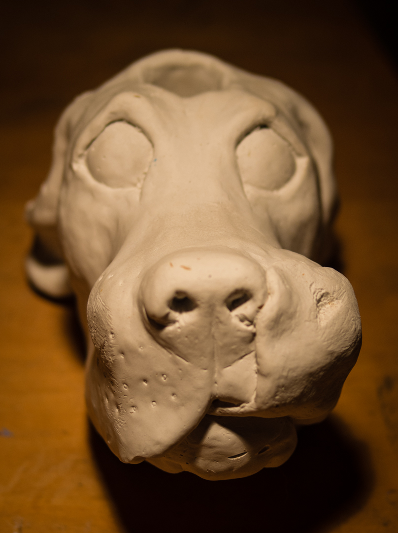I finished painting the first successful hydrostone copy. Here it is next to the Plastilina one I’m currently working on. There was room for improvement on the first rubber pug mold so I’m going to make another with this Plastilina pug once It’s done.