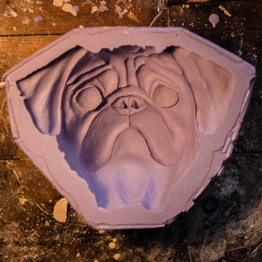I didn’t have quite enough Oomoo 30 to cover the dog so I had to improvise to raise the level in the box.